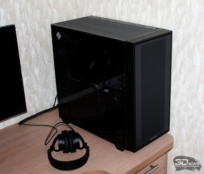 Корпус относится к форм-фактору Mid-Tower: его высота равна 450 мм, длина – 440 мм, а ширина – 238 мм. Масса корпуса довольно приличная для этого класса и равна восьми килограммам.