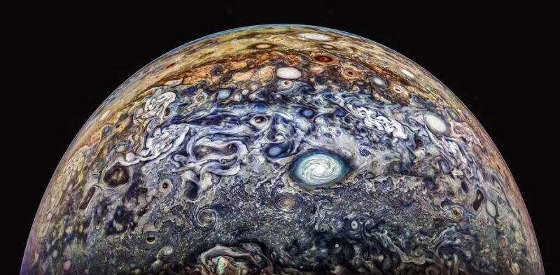 Зонд Национального управления по аэронавтике и исследованию космического пространства (NASA) США «Юнона» (Juno) передал на Землю новые снимки Юпитера, которые были сделаны во время 66-го сближения с планетой. Аппарат стоимостью $1 млрд завершил очередной пролёт вблизи Юпитера 23 октября, впервые опустившись к полюсам планеты.