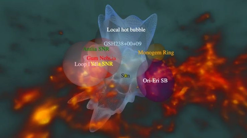 Группа астрономов создала самую полную 3D-карту так называемого Местного пузыря — области пространства вместе с Солнечной системой, которая образовалась после взрыва сверхновой 14 млн лет назад. В общих чертах границы Местного пузыря были известны учёным. Новое исследование с помощью рентгеновского телескопа eROSITA позволило обнаружить неизвестный ранее элемент пузыря — что-то типа межзвёздного тоннеля или отростка в сторону созвездия Центавра.