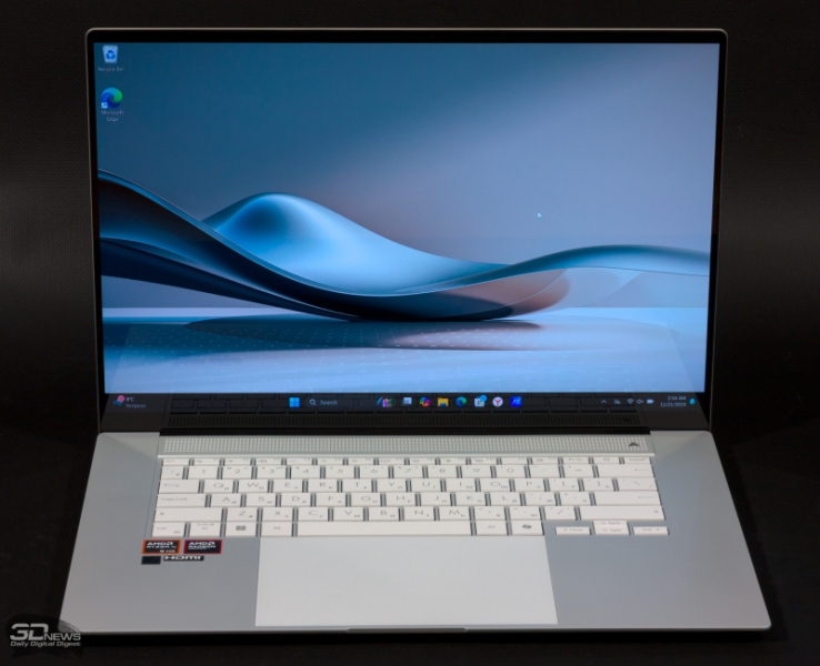 Лэптоп комплектуется чипами оперативной памяти LPDDR5X с максимальной пропускной способностью, которую могут освоить процессоры Ryzen AI, — 7500 МТ/с. Любопытно, что RAM может быть набрана «небинарными» микросхемами, поэтому общий объем составляет 32 либо 24 Гбайт. В качестве накопителя используется SSD объемом 1 Тбайт с интерфейсом PCI Express 4.0.