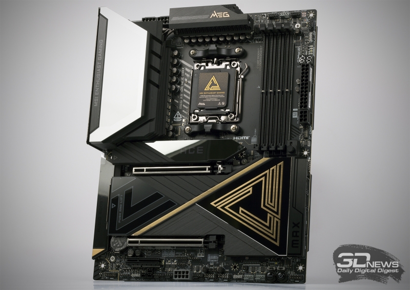 Давайте будем откровенны: AM5 на сегодняшний день — это платформа, которая позволяет пользователю обойтись без дорогой навороченной платы. Надеюсь, с выходом процессоров Zen 6 ничего не изменится в этом плане. Я могу привести массу примеров материнок MSI, обеспечивающих стабильную работу современных чипов Ryzen, видеокарт GeForce и Radeon и быстрых твердотельных накопителей. Именно поэтому покупка такого устройства, как MEG X870E ACE MAX, преследует иные цели. Статусность, максимальные функциональность и надежность, нежелание мириться с компромиссами, сборка сложных, дорогих и неповторимых проектов — выбирайте любой подходящий для вас критерий. Герой сегодняшнего обзора отвечает всем этим пунктам.