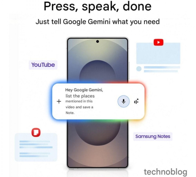 Новая флагманская серия смартфонов Samsung также получит интеграцию с обновлённым виртуальным помощником Google Gemini. Он сможет читать текст на экране в таких приложениях, как YouTube, и взаимодействовать с фирменными приложениями Samsung, включая Samsung Notes.