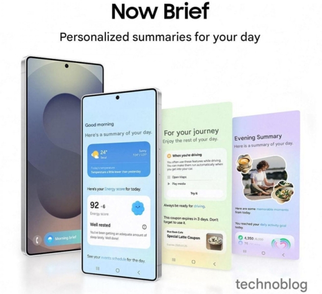 Свежая утечка также раскрывает детали об ИИ-функциях, которые появятся в новой серии Galaxy S25. Программа Now Brief будет предоставлять персонализированные сводки на день: утреннюю и вечернюю сводки, а также информацию о поездках. Утренние сводки будут включать данные о погоде, расписании пользователя, а также информацию об активности при использовании смартфона вместе со смарт-часами или смарт-трекером. Сводка о поездках предложит навигацию и начнёт воспроизведение музыки при посадке в автомобиль. Вечерний обзор предоставит данные о дневной активности и создаст «памятные моменты» дня в виде фотоколлажей.