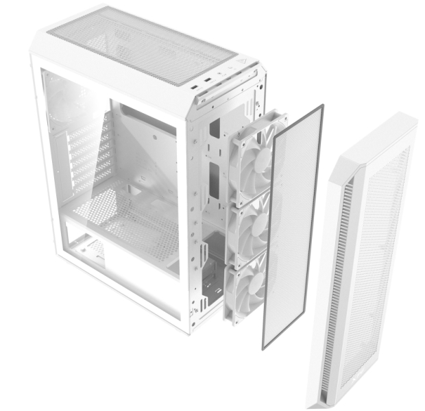 Корпус оснащён пятью предустановленными 120-мм вентиляторами, четыре из которых имеют ARGB-подсветку. Новинка поддерживает установку радиаторов СЖО 240 или 360 мм спереди, 240 мм сверху и 120 мм сзади. Также есть возможность установки видеокарты длиной до 340 мм, процессорного кулера высотой до 160 мм и блока питания длиной до 170 мм. Внутри предусмотрены места для двух 2,5-дюймовых и двух 3,5-дюймовых накопителей.