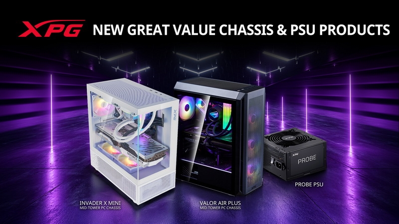Игровой бренд XPG компании Adata сообщил о выпуске двух новых доступных компьютерных корпусов Invader x Mini и Valor Air Plus, а также недорогих блоков питания серии XPG Probe Bronze.