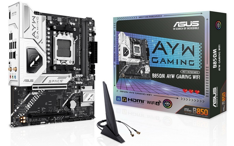 Компания Asus выпустила материнскую плату B850M AYW Gaming WiFi, на основе которой можно собрать компактную, но мощную игровую систему. Новинка выполнена в формате MicroATX и предназначена для процессоров AMD Ryzen 7000 и 9000.