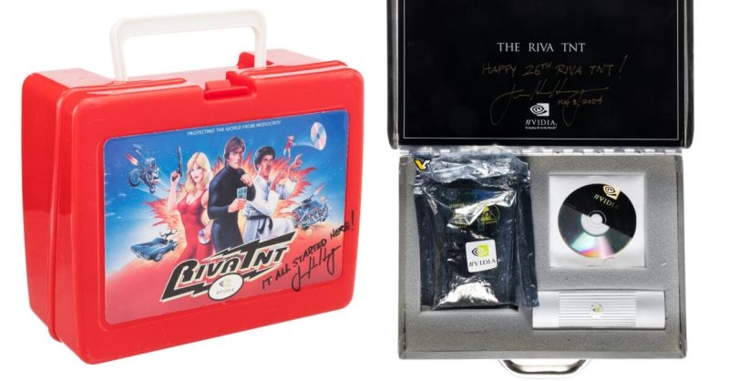 В скором времени коллекционеры электроники смогут побороться за редкую видеокарту. Аукционный дом Heritage продаст уникальный лот, включающий в себя прототип графического ускорителя Nvidia Riva TNT в металлическом кейсе с автографом главы Nvidia Дженсена Хуанга (Jensen Huang), а также редкий ланч-бокс, который в то время использовался в маркетинговых целях.