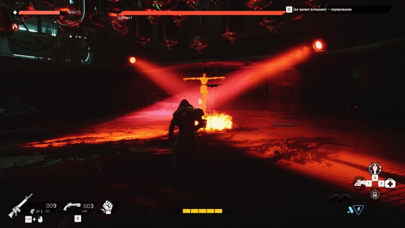 Что особенно интересно — игру действительно можно пройти сборкой, целиком полагающейся на огнестрел. Впрочем, всегда есть шанс, что всё пойдёт не по плану — здесь, как и положено в роглайках, приходится адаптироваться на ходу, а идея для конкретной сборки внутри одного забега может кардинально поменяться несколько раз. Хорошо, что разнообразных опций для «разгона» здесь хватает. Представлены как стандартные усиления вроде повышения характеристик, так и более ситуативные мутаторы, дающие особенно сильные преимущества вроде увеличенного урона или усиленной защиты, но вместе со штрафом в духе получения тройного урона от любой атаки или экстремальной хрупкости оружия ближнего боя. Также по дороге наверх встретятся разнообразные торговцы, терминалы и «алтари», где за горстку жетонов (одна из местных валют) можно получить полезные бонусы и эффекты. Но главный источник превосходства Моргана над врагами — кибернетические импланты.
