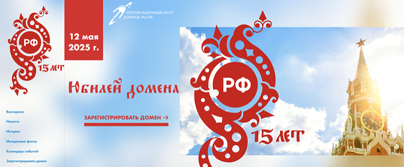 Сегодня российскому национальному домену .РФ исполнилось 15 лет. 12 мая 2010 года России был делегирован кириллический домен верхнего уровня .РФ, который стал первым кириллическим доменом верхнего уровня в мировой системе интернет-адресации, отметил Координационный центр доменов .RU/.РФ. Тогда же заработали первые сайты в новой доменной зоне – президент.рф и правительство.рф.
