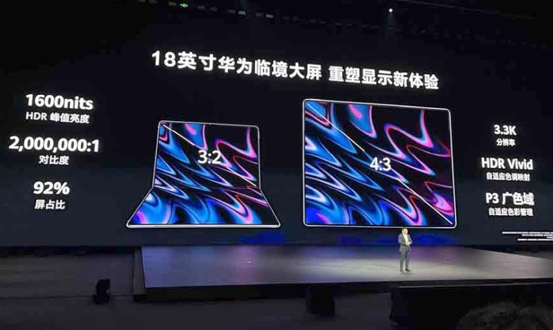 Huawei представила «первый в мире ПК со складным экраном» — MateBook Fold Ultimate Design толщиной всего 7,3 мм в разложенном состоянии и весом 1,16 кг. Фактически это планшет с 18-дюймовым экраном с разрешением 3,3K, который может складываться пополам, предлагая соотношение сторон 3:2 в сложенном состоянии и 4:3 в разложенном.