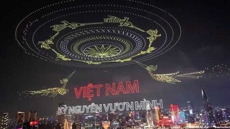 В небе над Saigon Riverside Park дроны создавали световые узоры, а также сцены из жизни страны и её истории. Всё шло хорошо, однако главное шоу было отменено. В Книгу рекордов Гиннеса было внесено достижение, установленное 28 апреля во время генеральной репетиции представления.