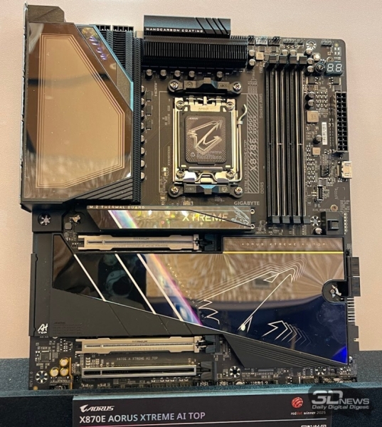 GIGABYTE X870E AORUS XTREME AI TOP — флагманская материнская плата серии AORUS, ориентированная на системы для работы с ИИ, в том числе для его локального обучения. Плата поддерживает все процессоры Socket AM5 для процессоров Ryzen 9000, 8000 и 7000, обладает мощной 18+2+2-фазной подсистемой питания и поддерживает память DDR5 со скоростью до 8800 МТ/с. Интеграция с GIGABYTE AI TOP Utility обеспечивает простую настройку и безопасность.