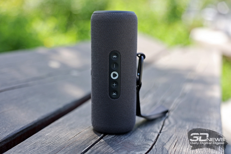 «Станция Стрит» получилась достаточно крупной. Сами по себе габариты не удивляют – примерно таких размеров тубуса и ожидаешь, он помещается в любой рюкзак, да и в иные дамские сумки влезет. А вот вес в 700 граммов кажется несколько излишним, особенно если учесть, что аккумулятор здесь менее емкий, чем в чуть более чем полукилограммовом JBL Flip, например.