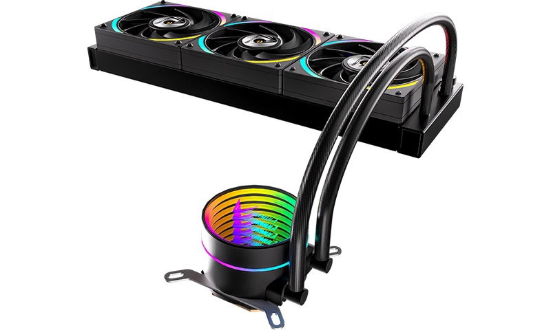 СЖО комплектуется тремя 12-см вентиляторами Air Bridge ARGB с модульной конструкцией, минимизирующей количество кабелей. Вентиляторы оснащены разъёмами ARGB (3-pin) и PWM (4-pin) для управления скоростью и подсветкой. Они обеспечивают достаточный воздушный поток при низком уровне шума, что подходит для высокопроизводительных систем.
