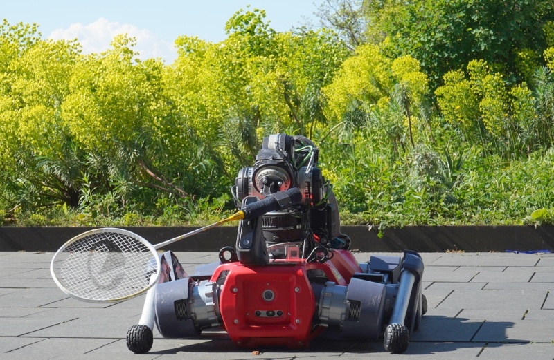 Группа учёных из ETH Zürich под руководством робототехника Юньтао Ма (Yuntao Ma) представила робота, способного играть в бадминтон. Робот ANYmal внешне напоминает миниатюрного жирафа с ракеткой «в зубах», и создан на базе четвероногого промышленного робота, предназначенного для работы в нефтегазовой отрасли, от компании ANYbotics. Вес ANYmal составляет около 50 кг, длина корпуса — менее метра, а ширина — менее 50 сантиметров.