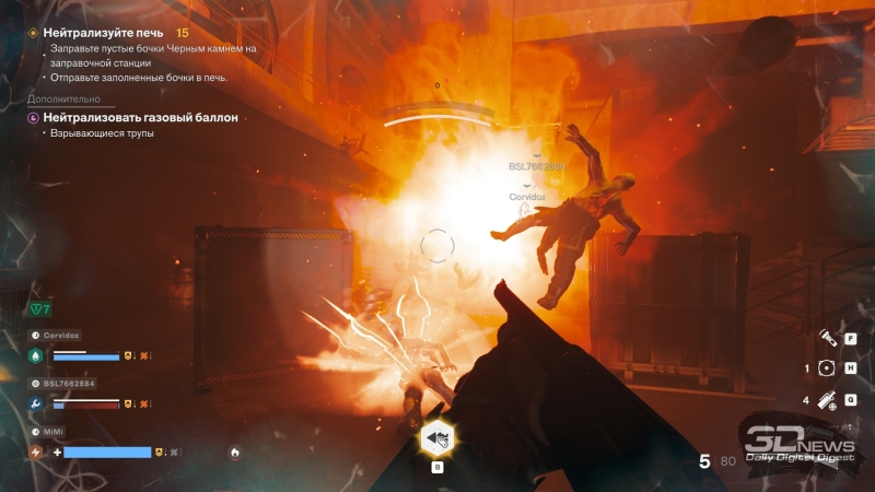 Особенно когда на вылазках открываются уровни доступа. Первый, доступный с самого начала, даёт возможность пройти только первую, самую скучную, зону миссии. На втором открывается ещё одна, предлагающая те же механики, но в более сложной вариации. Третий уровень доступа открывает кульминацию всей вылазки с куда более замысловатыми целями. Например, в задании «Лютый жар» предстоит тушить пламя с помощью бочек со специальной жидкостью, и параллельно прятаться от испепеляющих огненных выбросов; в «Управлении с земли» — подготовить запуск ракеты и осуществить взлёт; а в «Морозилке» потребуется провести причудливый ритуал, включающий в себя поиск манекенов и усаживание тех в люльку фуникулёра. Добавьте к этому нескончаемые орды врагов, среди которых будет всё больше опасных элитных представителей, и вот рабочая рутина превращается в крайне насыщенное действо.