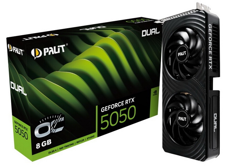 Компания Palit представила видеокарты GeForce RTX 5050 начального уровня в собственных исполнениях StormX и Dual. Первая оснащена системой охлаждения с одним вентилятором, вторая — с двумя. Версия Dual будет доступна как с дополнительным заводским разгоном, так и без него.