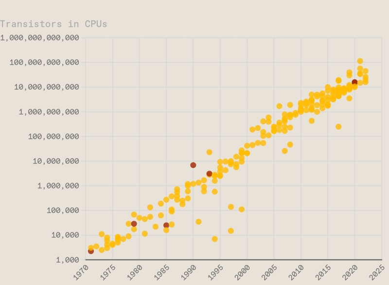 Ещё в конце 2022 г., когда ChatGPT только начинал завоёвывать нынешнюю оглушительную популярность, представители подразделения Intel под названием Components Research Group предсказали, выступая на IEEE International Electron Devices Meeting, что к 2030 году плотность транзисторов на чипах просто-таки обязана будет вырасти десятикратно. Если учесть, что на тот момент максимальное значение этого показателя для серийных микросхем уже практически достигало 100 млрд, речь как раз шла об одном триллионе транзисторов на кристалл. К тому, похоже, дело и движется: весной 2024-го Nvidia представила самый мощный свой чип для серверных ускорителей Blackwell B200 на 208 млрд транзисторов, а год спустя Apple вывела на рынок персональные компьютеры на ARM-процессорах собственной разработки M3 Max с общим числом транзисторов 184 млрд, — правда, здесь это число приходится на два раздельных чипа, упакованных в единый корпус и соединённых высокопроизводительной шиной обмена данными.