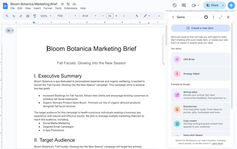 Ранее настраиваемыми чат-ботами Gem можно было пользоваться только в приложении Gemini. Сейчас создавать новые варианты можно прямо из боковой панели Workspace. Новые возможности начали развёртываться для всех пользователей платформы с доступом к Gemini со вчерашнего дня, но в отдельных случаях придётся подождать «более 15 дней».