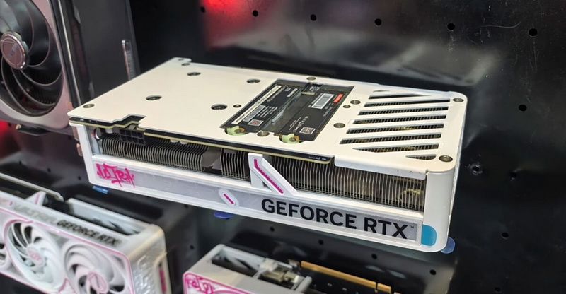 В задней части видеокарты Colorful iGame Ultra Duo White SSD имеются два слота M.2 для установки SSD. Судя по опубликованным изображениям, новинка оснащена очень короткой печатной платой.