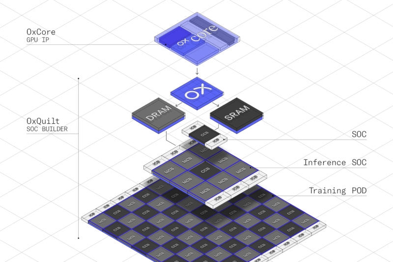 Технология графических процессоров Oxmiq масштабируется от одного ядра OXCore — для роботизированных систем — до тысяч ядер, предназначенных для ИИ-ускорителей в центрах обработки данных облачных провайдеров. Это достигается благодаря чиплетной технологии OXQuilt. Кроме того, архитектуру можно адаптировать под конкретные типы вычислений, сообщили в компании.