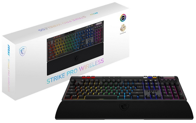 Новинка получила аккумулятор ёмкостью 4200 мА·ч. MSI обещает до 1500 часов автономной работы Strike Pro Wireless в режиме Bluetooth при выключенной подсветке. Последняя индивидуальна для каждой клавиши. Полная зарядка занимает около 7 часов. В комплект поставки входит подставка под запястья с магнитным креплением и эффектом памяти формы. Встроенная память клавиатуры позволяет сохранять до трёх профилей настроек.