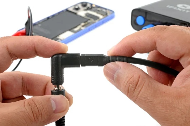 VoltClip оснащён парой «крокодилов», прикреплённых к коротким проводам на одном конце, и переходником с адаптером постоянного тока 12 вольт на другом. При подключении к зарядке или пауэрбанку с USB Type-C (сама компания предлагает в качестве примера, аккумулятор новой портативной паяльной станции iFixit), VoltClip, в зависимости от параметров источника питания, будет выдавать либо 9, либо 12 вольт. Этого достаточно для отклеивания состава, удерживающего аккумулятор iPhone 16, за 90 или 60 секунд соответственно.