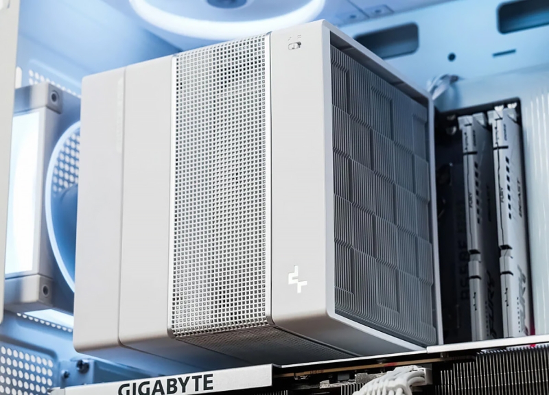 При установке DeepСool Assassin VC Elite WH он не создаст помех высоким модулям оперативной памяти, а центральный вентилятор будет дополнительно охлаждать радиаторы на цепях VRM материнской платы, так как опускается низко, вплоть до прижимных винтов.