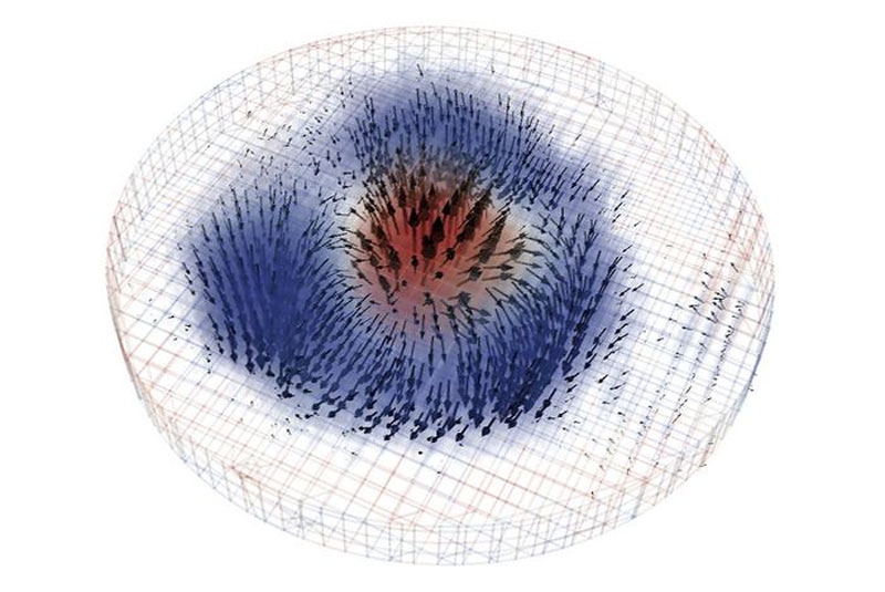 Учёные Национальной лаборатории им. Лоуренса в Беркли (Lawrence Berkeley National Laboratory) впервые получили объёмное изображение скирмиона — наноразмерного магнитного вихря. Это настолько устойчивая структура, что она может служить элементом памяти и логики в обычных и квантовых вычислениях. Спиновая сущность скирмиона подразумевает предельно малое потребление энергии и высокую надёжность — всё это может привести к прорыву в системах хранения и расчётов.